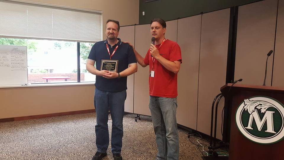 You are here: Home1 / About BibleByte Games2 / Phil Conrod Receives the Christian Game Developer’s Conference 2016 Barnabas Award3 / Seth-Crofton-Presenting-the-Barnabas-Award-to-Phil-Conrod-at-CDGC-2016