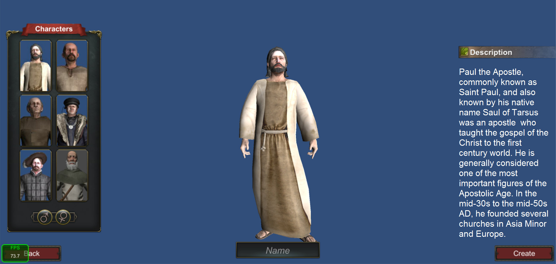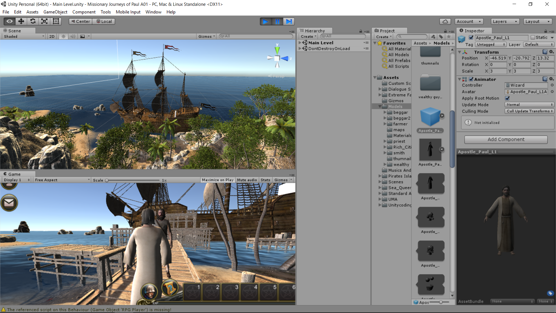 We started off by creating a custom high quality 3D Apostle Paul character model   We then added many other Biblical Era 3D Models as primary 3D Character models for the game.  We then created lots of  AD 30 Era UMA clothing models for the  many different non-player character (NPC) models  so we could fill the many villages with people.  We have also been working on different game levels for important historical sites like Jerusalem and Herod’s Temple & Palace.